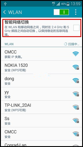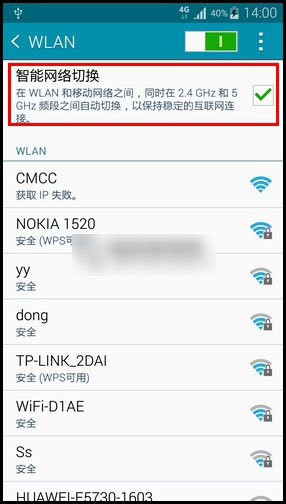 5、三星Note 4开启智能网络切换成功,如下图;