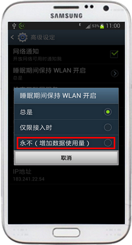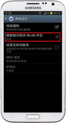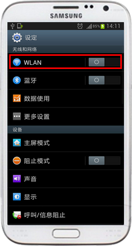 这里便以Galaxy Note2为例,介绍三星手机在锁屏下自动断开WLAN的设置方法。