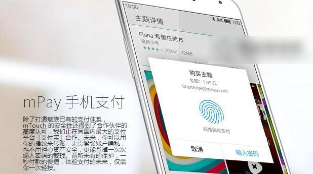 关于mPay手机支付,魅族的介绍是,只需要将手指放到增加了指纹识别的Home键上,就可以完成整个支付,摆脱繁琐的支付密码。