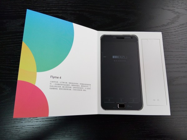 手机正面,与MX4一样的包装风格。