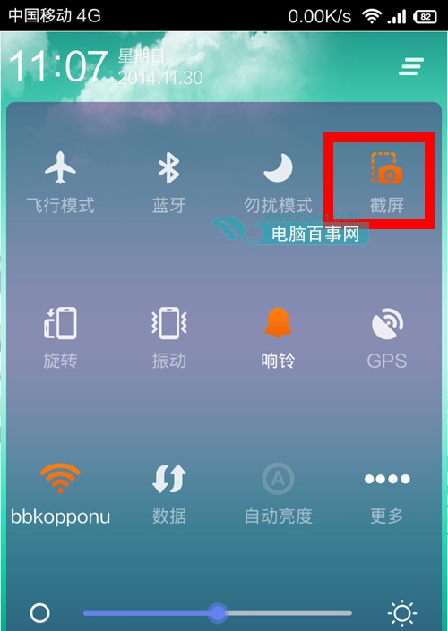 在手机待机主界面下,下拉屏幕,然后点击【>截屏】即可,如下图所示: