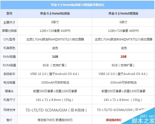 大家要想了解联想黄金斗士Note8标准版与增强版之间的真正区别,我们得先通过以下黄金斗士Note8标准版与增强版详细参数对比图,方可看出其中的区别,参数对比如下: