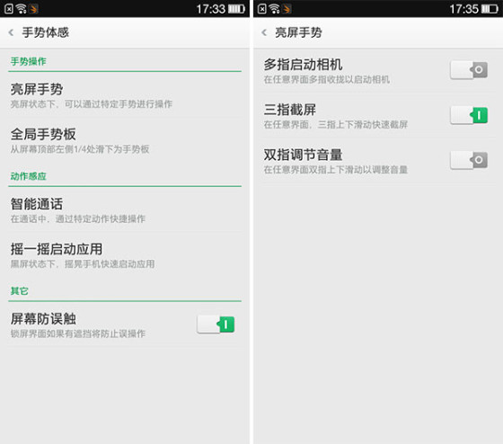 进入OPPO的【设置】-【手势体感】或者【亮屏手势】设置,然后打开【三指截屏】功能即可,开启三指截屏后,在任意界面双指上下滑动即可快速截屏。
