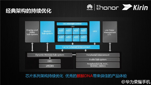 麒麟620采用了ARM公司最新的Cortex-A53架构设计,同频率下较A7架构提升40%,而64位的设计,也相比32位软件的性能平均提升了25%。