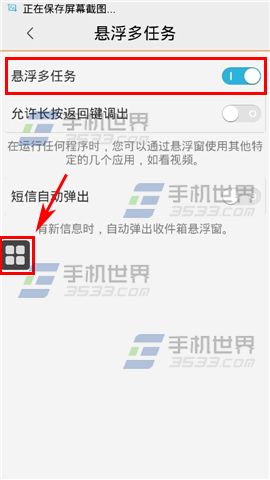 2)打开【悬浮多任务】选项的开关,这个时候屏幕上会多了一个【悬浮按钮】,点击该按钮就可以进行一些快捷操作了。(如下图)