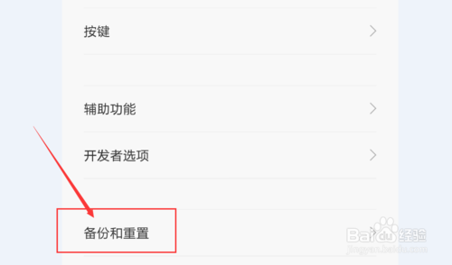 3、 进入【其他高级设置】界面后找到最下面的【备份和重置】,点击【备份和重置】;如图所示: