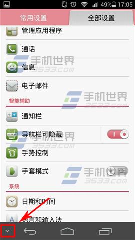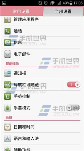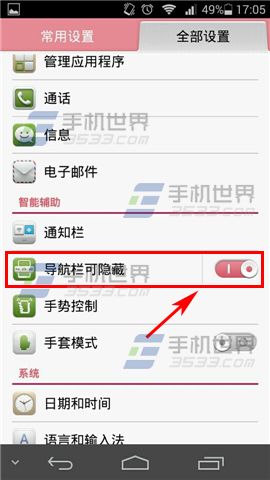 1)打开华为荣耀6的【设置】,然后打开【导航栏可隐藏】选项。(如下图)