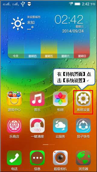1、在【待机界面】点击【系统设置】,如下图;