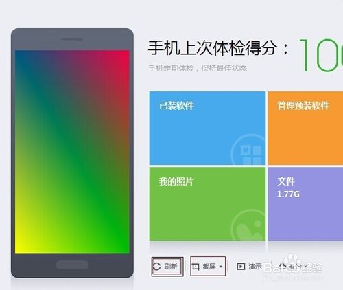 第三种就是用360手机助手截屏了,手机连上电脑(用USB数据线连接),点击“刷新”再点击“截屏”就可以截下你想要的截图了