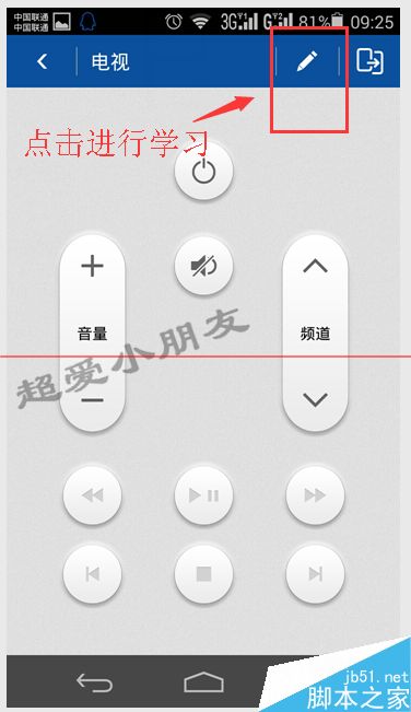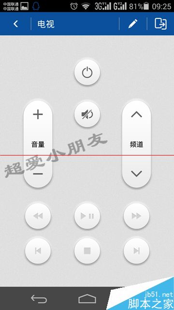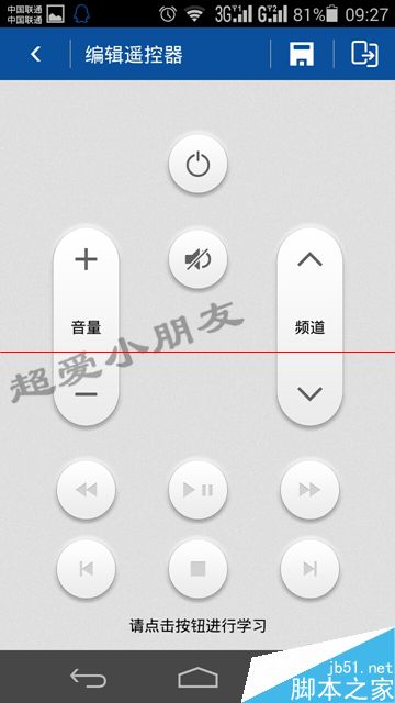 4、此时会出现机顶盒遥控器面板,通常情况下,需要让手机遥控器学习机顶盒遥控器的编码信号,才能进行音量或者频道的调节。