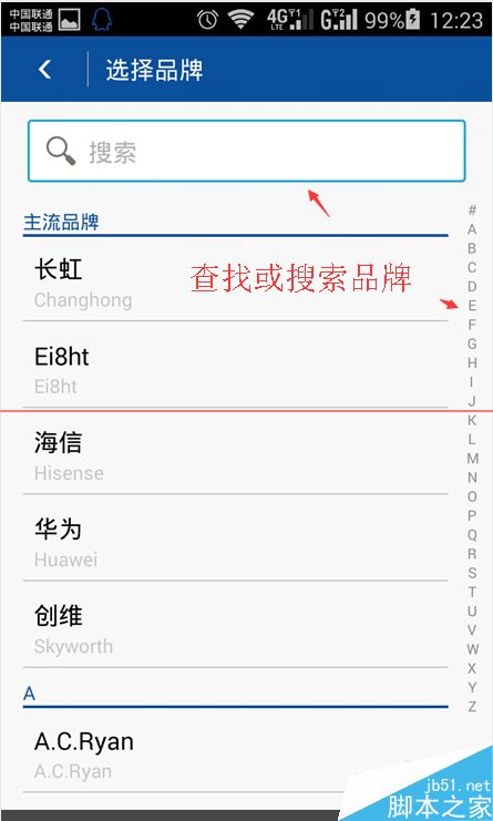 2、看看自己家电视机顶盒是什么品牌的,找到这个品牌并选中。