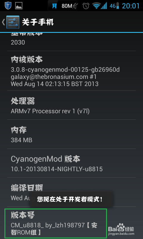 2、拉到底并快速点击“版本号”几次(最多5次),系统即提示“您现在处于开发者模式”(不同手机提示可能不同);