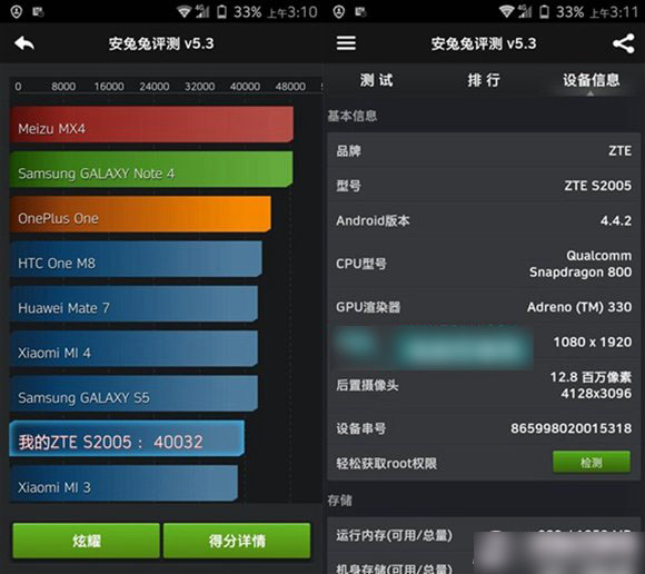 系统方面,星星2号采用了全新的MiFavor UI 3.0,基于Android 4.4开发的,而中兴星星一号采用的是MiFavor2.3,看得出来系统版本较低,需要用户自行升级。
