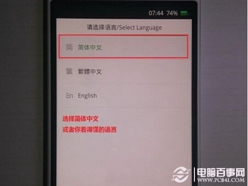 1、首先手机彻底光机,在手机关机的状态下同时按住【音量上键】和【电源键】按住数秒等待手机进入recovery模式,然后选择语言。