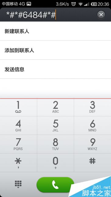 6、在拨号界面输入*#*#64633#*#*,或者输入*#*#6484#*#*