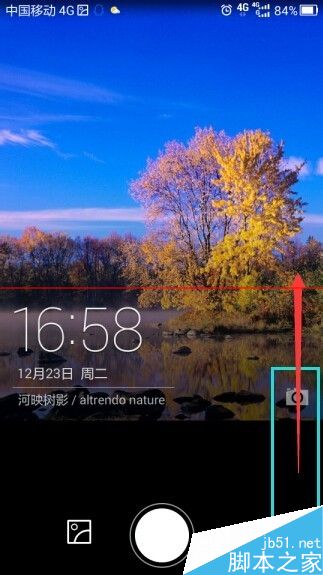 3、在屏幕右侧底部,向上滑动可以快速相机。