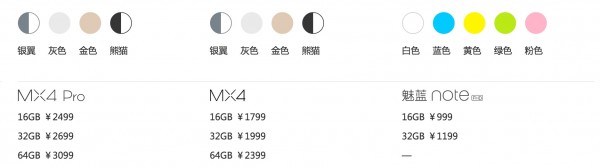 而魅族官方发布了魅蓝NOTE,以及魅族MX4和魅族MX4Pro的参数对比。