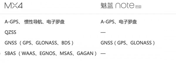 由于处理的不同,MX4兼容的定位系统比魅蓝NOTE多了许多中方式,在一定程度上决定了许多场合下,定位速度和导航的准确度MX4要强于魅蓝NOTE。