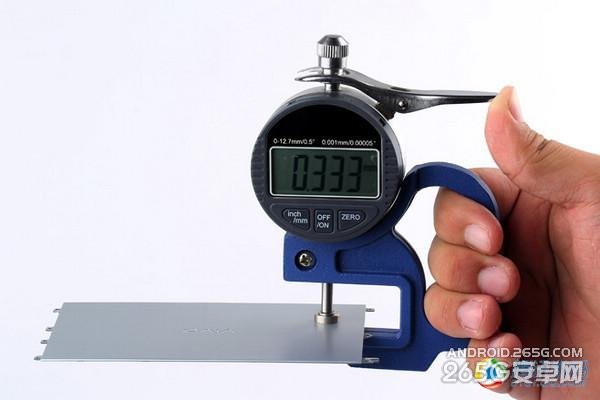 奥氏体不锈钢后盖的厚度为0.33mm,不仅薄,而且硬。官网宣称这后盖采用了纳米级防指纹涂层。