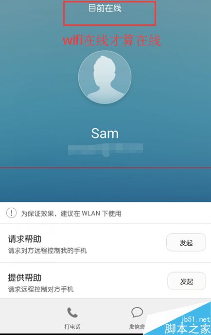 6、注意:只有对方wifi联网的时候,才会显示【在线】