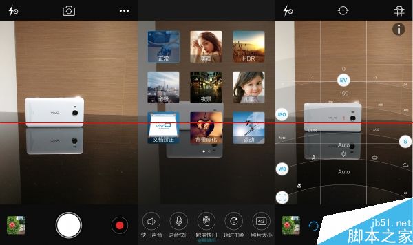 拍照界面方面,由于二者都是vivo出品,所以拍照的界面和功能也都是大同小异,二者最大的不同就是Xshot的手动模式下,允许用户调节的参数范围更大,拿ISO来说,Xshot在手动模式下用户可以选择最高3200的ISO值和最长32秒的曝光时间,而X5 Max手动模式的最高ISO值仅为1600 ,手动曝光快门时间最长也只有1秒而已。