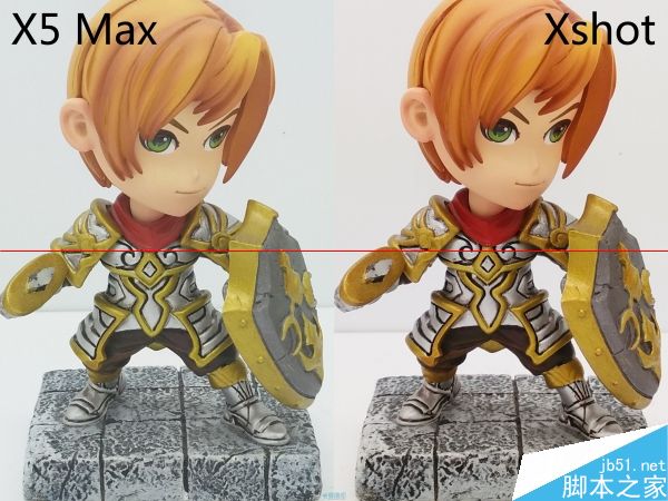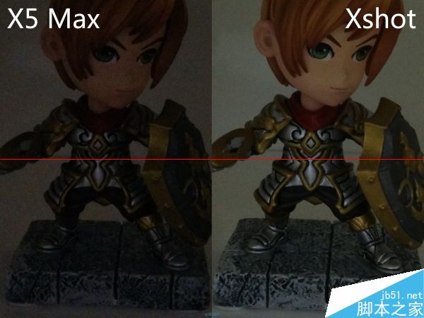 在第一组光线明亮的样张之中,X5 Max和Xshot均表现优异,但是二者很明显在发色倾向上存在明显区别:X5 Max的样张颜色清淡,整体对于色彩的还原比较准确,而Xshot发色明显是属于艳丽型的,玩偶的“脸色”相比较X5 Max拍摄的样张之中更加地红润,整体色彩饱和度也高了许多。