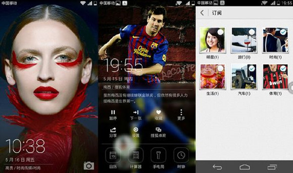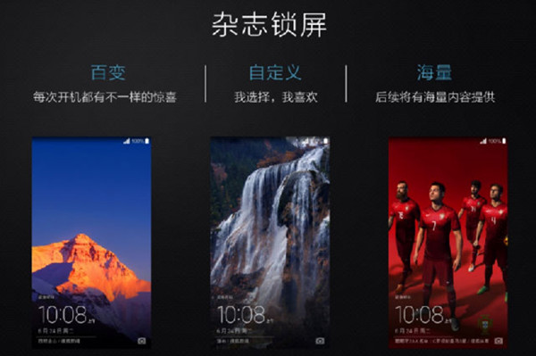 华为EMUI 3.0解锁界面的杂志锁屏可以说算是EMUI发展以来最有范儿的作品了。杂志锁屏里的图片高清新颖,介绍也独具特色,让人赏心悦目;还有自动切换功能,让你每一次点亮屏幕都有不一样的美图。