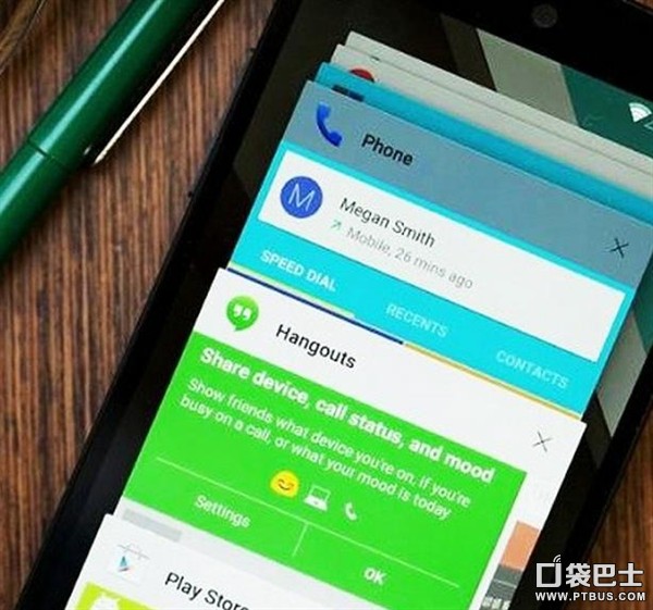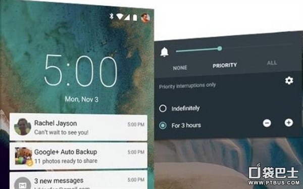 Android 5.0 Lollipop通知中心融入更多的卡片式风格,即使是在锁屏状态下也可以进行多种功能操作。同时用户可以自定义通知的优先级 别,使得用户不会错过任何重要的通知。还可以设置特定的通知权限,只有被允许的通知消息才会推送。同时还具有操作性,比如用户在游戏时有电话打入,不会以全屏显示,而是弹出可操作的通知卡片,用户可选择接听或拒接,不影响游戏继续进行。
