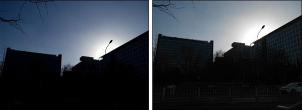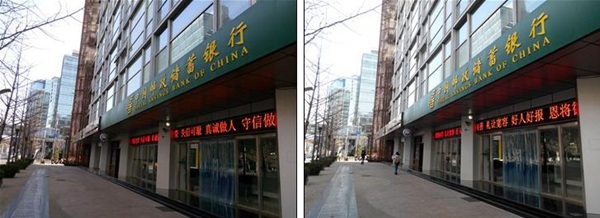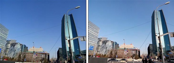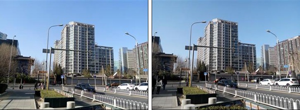 逆光情景主要考察的是手机的测光能力,在强光下准确突出主体能体现出处理器对光线的感知力和判断力。本组样张右边红米note表现效果要好于左侧,天空颜色虽然色彩浓度不如魅蓝note,但建筑物的轮廓以及明暗度都能展现出来。