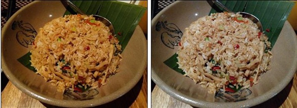 接下来我们在看一组室内美食拍照对比,从两组不同美食照片对比效果来看,左边的魅蓝note色彩表现更加浓郁,红米note色彩表现更加还原现场效果,当然有些时候还原色彩并不讨巧,反而色泽浓郁的魅蓝note照片成像效果更受欢迎,毕竟大家都想看更有食欲的美食。