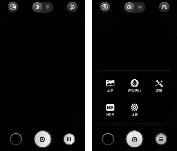 红米note使用了MIUI V5系统,整体拍照界面大家在熟悉不过,界面简单直接,在拍照界面功能比较单调,切换拍照模式不如魅蓝note方便。