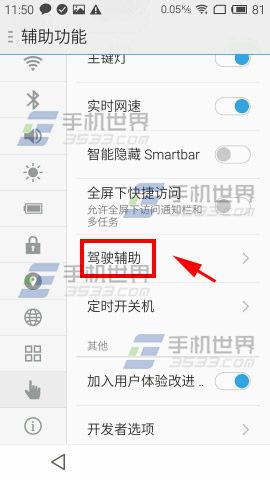 打开魅蓝note手机【设置】找到并点击【辅助功能】,点击【驾驶辅助】,将该功能开启后,可根据需要开启相应功能。(如下图)