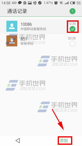 3)勾选要添加的号码点击【添加】即可。(如下图)