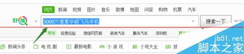 1、首先在360或者百度等搜索引擎上面搜索3000万像素华硕飞马手机,如下图所示