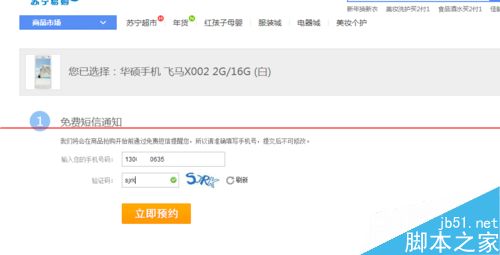 5、登入之后,确认你的手机号码,然后输入验证码,点立即预约,如下图所示