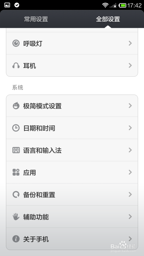 1、打开设置-全部设置备份和重置,备份好你的手机数据。