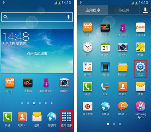 1.在待机页面下,点击【应用程序】,点击【设定】。