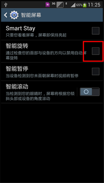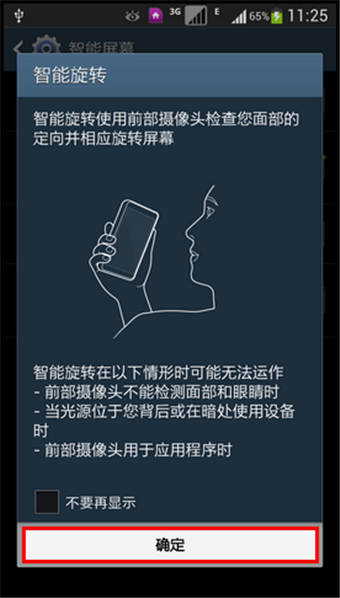 三星在Galaxy S4中增加了非常神奇的智能旋转功能。智能旋转是指:使用前部摄像头侦测用户面部的朝向,然后相应的旋转屏幕。若要开启此功能,请按照以下步骤进行操作: