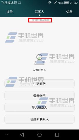 1)点击华为荣耀6【联系人】,在联系人界面,下拉开启懒人模式。(如下图)