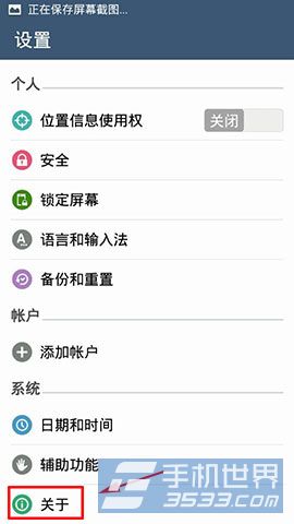 1)打开华硕飞马手机【设置】,点击【关于】。(如下图)