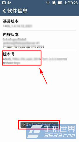 2)进入【软件信息】,找到并连续点击【版本号】直至提醒“您现在处于开发者模式”。(如下图)
