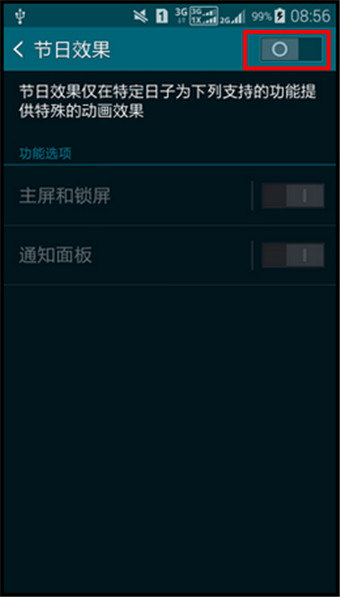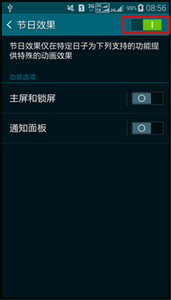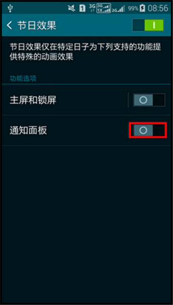 5.选择节日效果的显示位置,这里以“通知面板”为例,点击【通知面板】右侧的滑块将其点亮