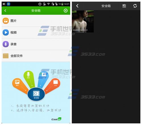 3)打开安全箱方法二:打开【文件管理】进入【安全箱】输入密码即可查看。(如下图)