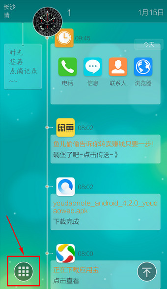 4.可进行常用的操作,点击中间的【APP】可进入应用程序菜单