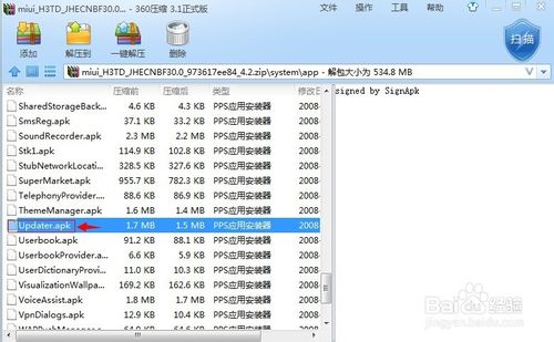 3、打开之后进入找到“app”这个文件夹;双击进入之后,上下移动鼠标,找到名为“Updater.apk”。