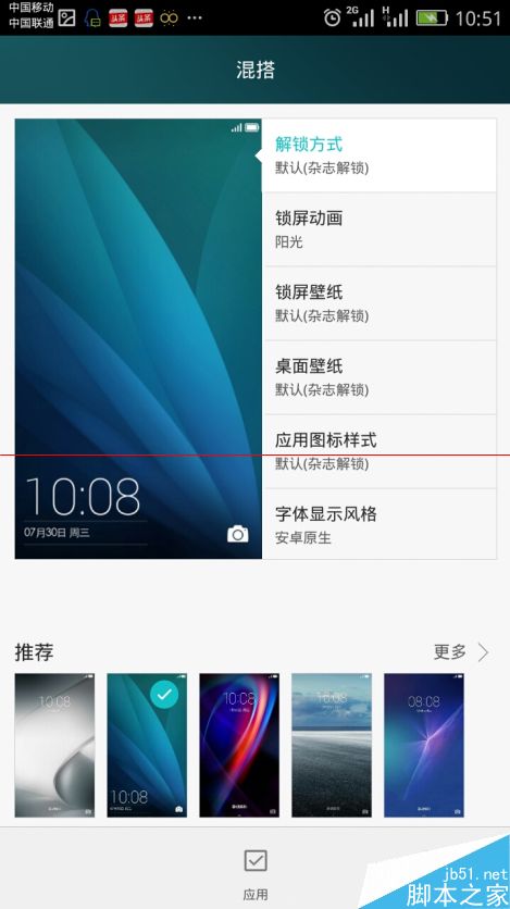 1、进入主题-我的-混搭,解锁方式选择默认主题,应用即可