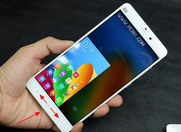 小米Note单手模式怎么用呢?方法很简单,只要向左或向右滑动底部的菜单键、Home键、返回键这三个功能按键,系统就会快速进入单手操作模式。比如要打开左侧的单手模式,只需要用手指,从Home键往左侧的菜单键,方向滑动一下即可,如下图所示。