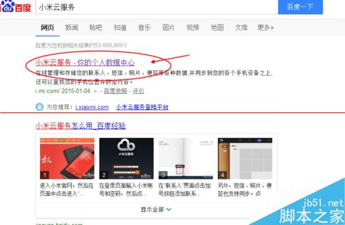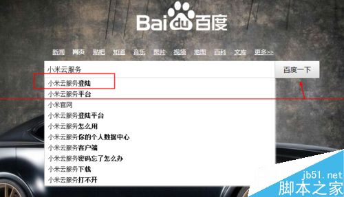 1、首先,进入百度官方页面,搜索“小米云服务”,并单击进入。
