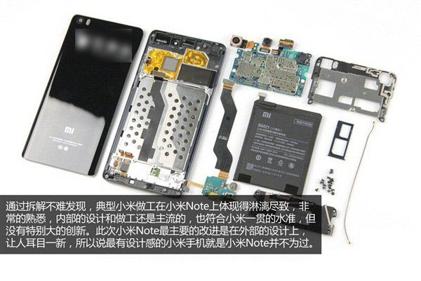 小米Note采用双面玻璃机身、结合金属边框,机身表面看不到一颗固定螺丝,外观设计是历代小米手机中最漂亮的。也正因为如此,小米Note电池也无法自行拆卸,除非是拆机。不过这种设计的手机,拆机向来难度比较大,因此如果是非专业人士或者没有相关拆机经验的用户,请勿擅自拆机,否则可能会损坏小米Note。本文也不是鼓励大家拆机,只是与大家探讨一下小米Note拆机细节以及注意事项,仅供参考。