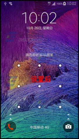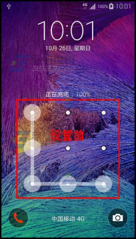 1)先来看下三星note4设置锁屏图案不可见的前后对比吧。左图为可见解锁图案状态,右图为设置后解锁状态。(如下图)